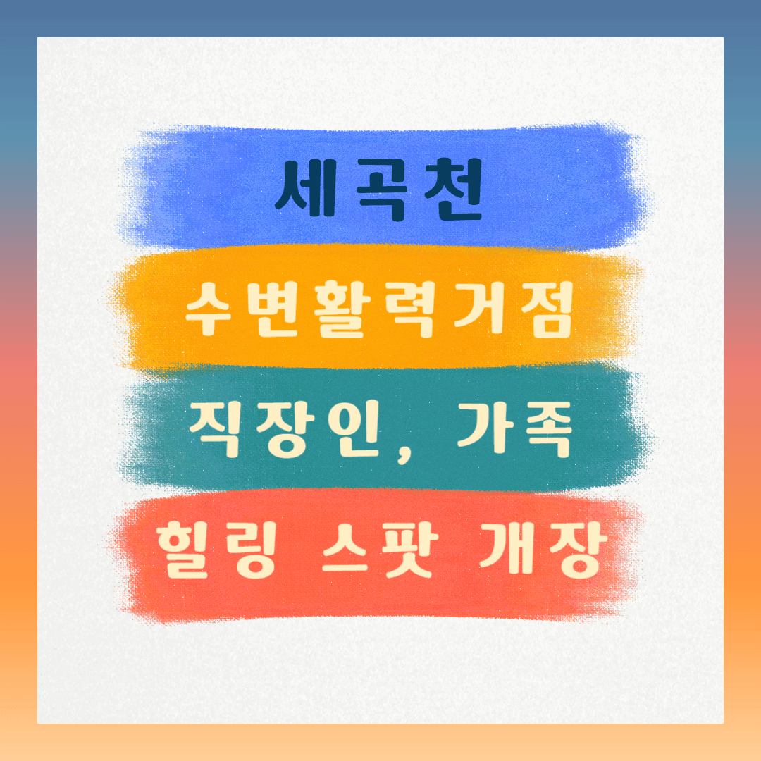 세곡천 수변활력거점은 도심 속에서 자연과 함께 여유로운 시간을 보낼 수 있는 공간입니다. 직장인들, 가족들, 연인들 모두에게 최적의 장소로, 여러 연령층이 함께 즐길 수 있도록 다양한 시설이 잘 갖추어져 있습니다. 서울시의 수변활력거점 프로젝트는 도시 생활에 활력을 불어넣는 소중한 공간을 제공하며, 앞으로도 더 많은 곳에서 이런 수변공간을 만나볼 수 있기를 기대하게 만듭니다.